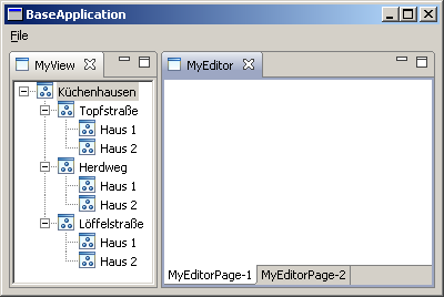 package com.sowas.javawiki.rcpbaseapplication; import org.eclipse.ui.IPageLayout; import org.eclipse.ui.IPerspectiveFactory; public class MyPerspective implements IPerspectiveFactory { public void createInitialLayout(IPageLayout layout) { String editorArea = layout.getEditorArea(); layout.setEditorAreaVisible(true); layout.addView(MyView.ID, IPageLayout.LEFT, 0.35f, editorArea); } }