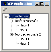 package com.sowas.javawiki.rpcbaseapplication; import java.util.ArrayList; import java.util.List; import org.eclipse.jface.viewers.ILabelProvider; import org.eclipse.jface.viewers.IStructuredContentProvider; import org.eclipse.jface.viewers.ITreeContentProvider; import org.eclipse.jface.viewers.LabelProvider; import org.eclipse.jface.viewers.TreeViewer; import org.eclipse.jface.viewers.Viewer; import org.eclipse.swt.SWT; import org.eclipse.swt.graphics.Image; import org.eclipse.swt.widgets.Composite; import org.eclipse.swt.widgets.Tree; import org.eclipse.swt.widgets.TreeColumn; import org.eclipse.swt.widgets.TreeItem; import org.eclipse.ui.ISharedImages; import org.eclipse.ui.PlatformUI; import org.eclipse.ui.part.ViewPart; public class View extends ViewPart { public static final String ID = "TreeViewerDemo.view"; private TreeViewer m_treeViewer; class ViewLabelProvider extends LabelProvider implements ILabelProvider { public String getColumnText(Object obj, int index) { return getText(obj); } public Image getColumnImage(Object obj, int index) { return getImage(obj); } public Image getImage(Object obj) { return PlatformUI.getWorkbench().getSharedImages().getImage(ISharedImages.IMG_OBJ_ELEMENT); } } public void createPartControl(Composite parent) { Tree addressTree = new Tree(parent, SWT.BORDER | SWT.H_SCROLL | SWT.V_SCROLL); addressTree.setHeaderVisible(true); m_treeViewer = new TreeViewer(addressTree); m_treeViewer.setContentProvider(new AddressContentProvider()); m_treeViewer.setLabelProvider(new LabelProvider()); // Der LabelProvider verwendet die toString()-Methode List<City> cities = new ArrayList<City>(); cities.add(new City()); m_treeViewer.setInput(cities); m_treeViewer.expandAll(); } public void setFocus() { m_treeViewer.getControl().setFocus(); } class City{ Street[] streets = new Street[4]; public City(){ for (int i = 0; i<streets.length; i++) streets[i] = new Street(this, i); } public Street[] getStreets(){ return streets; } public String toString(){ return "Küchenhausen"; } } class Street{ City city; House[] houses = new House[2]; int indx; public Street(City city, int index){ this.city = city; indx = index + 1; for (int i = 0; i<houses.length; i++) houses[i] = new House(this, i); } public House[] getHouses(){ return houses; } public String toString(){ return "Topfdeckelstraße "+indx; } } class House{ Street street; int indx; public House(Street street, int i){ this.street = street; indx = i + 1; } public String toString(){ return "Haus " + indx; } } class AddressContentProvider implements ITreeContentProvider { /** * Liefert die Kinder eines Elements */ public Object[] getChildren(Object parentElement) { if (parentElement instanceof List) return ((List<?>) parentElement).toArray(); if (parentElement instanceof City) return ((City) parentElement).getStreets(); if (parentElement instanceof Street) return ((Street) parentElement).getHouses(); return new Object[0]; } /** * Liefert die Eltern eines Elements */ public Object getParent(Object element) { if (element instanceof Street) return ((Street)element).city; if (element instanceof House) return ((House)element).street; return null; } /** * Liefert, ob ein Element Kinder hat */ public boolean hasChildren(Object element) { if (element instanceof List) return ((List<?>) element).size() > 0; if (element instanceof City) return ((City) element).getStreets().length > 0; if (element instanceof Street) return ((Street) element).getHouses().length > 0; return false; } /** * Liefert die Root-Elemente * Kann daher meist getChildren() aufrufen */ public Object[] getElements(Object inputElement) { return getChildren(inputElement); } public void dispose() { } public void inputChanged(Viewer viewer, Object oldInput, Object newInput) { } } }